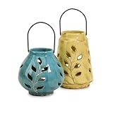 | ✚✚✚ Austin Ceramic Lanterns - Set of 2 Formed by hand and glazed in turquoise and ochre, the Austin ceramic lanterns feature a cutwork vine pattern and add glowing candlelight to any space. Holds pillar candles.